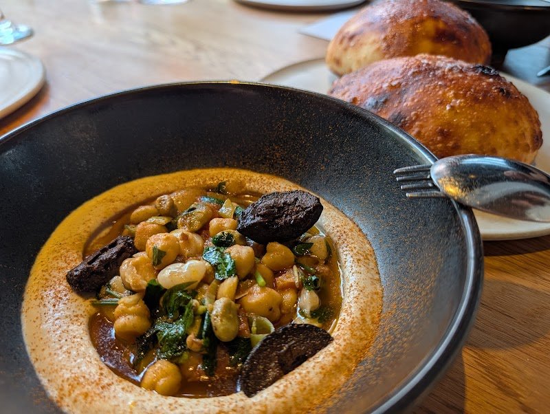 Absolutely stunning setting tucked inside Martin Place, surrounded by architectural buildings and a sculptural pool. The interior is just as beautiful, with modern, neutral tones and a warm, refined atmosphere. We booked a table in the inner dining room (as opposed to the heated outdoor area or bar), and despite booking a week in advance, the earliest dinner time available was 8:15โฏpm. When we arrived, our table wasnโt ready, and we had to wait about 15 minutes outside. However, once seated, our experience was exceptional. Our waiter for the night, Sam, was outstanding โ professional yet genuinely friendly and welcoming. He even allowed us to swap the tuna from the set menu for the bone marrow from the Classic Banquet, which was greatly appreciated. The food was nothing short of phenomenal, easily the best meal either of us has ever had. Even the pita bread stood out as the best weโve ever tasted. Every dish was beautifully balanced, and the set menu was generous. We were both extremely full by the end. The standout surprise of the evening was the dessert: Milk chocolate tart with Egyptian tea and plum. Smooth, salty, creamy, and unlike anything weโve had before. Worth returning for the dessert alone. An unforgettable dining experience. Worth every second.