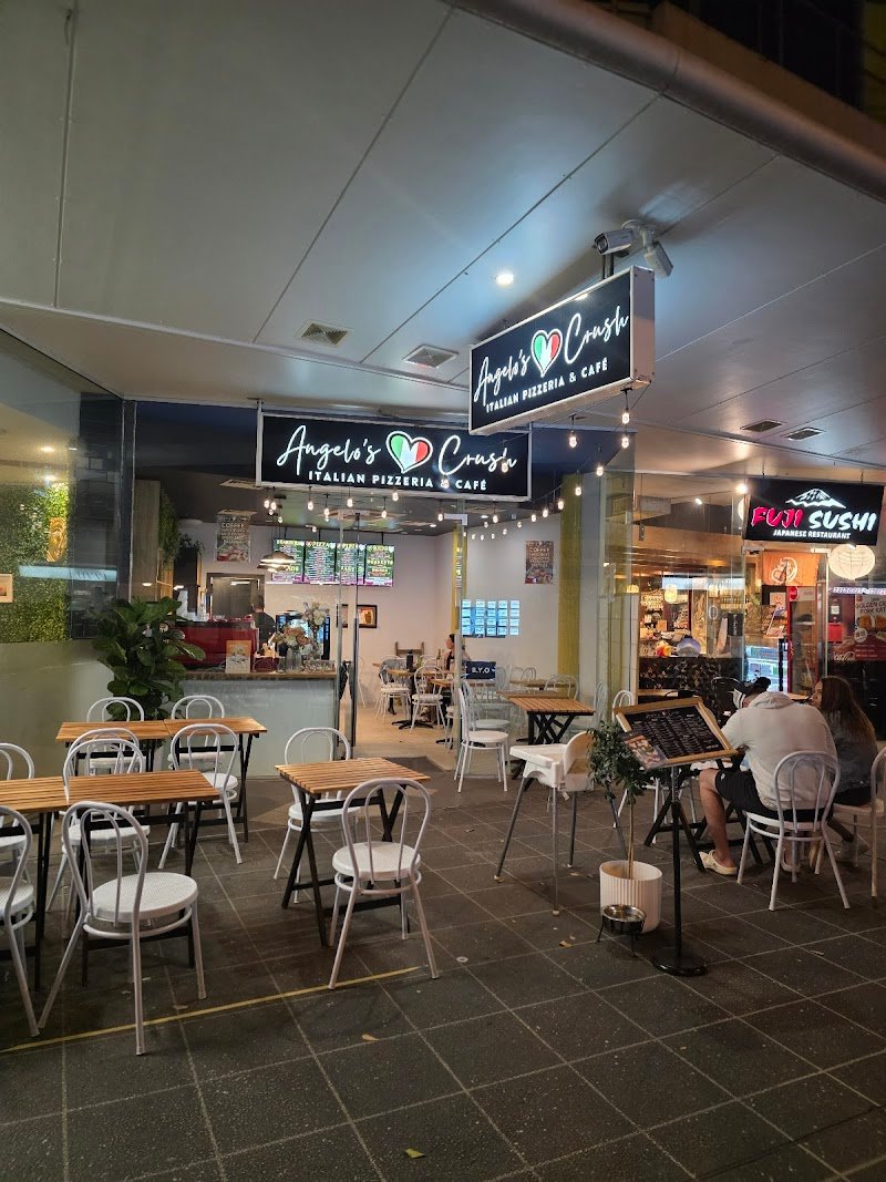 Fantastic atmosphere, and the owner is very courteous and friendly. The meal consisted of entrees, pizza and pasta. The entrees was Prosciutto & Bufala all I can it was delicious. The other entree was mixed marinated olives. Mains consisted of a pizza called Sexy truffle, I highly recommend this pizza. The topping is truffle paste, mozzarella, mushroom and Italian sausage. The linguine prawn pasta was prefect. Overall I highly recommend eating at Angelo's Crush. The service was fantastic portion sizes were more adequate.