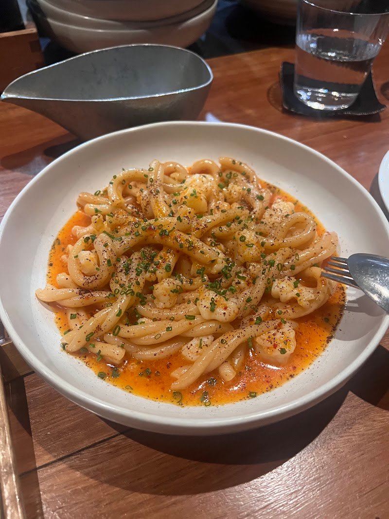 Such a cool spot in Newtown! Recommend getting there early as itโs walk-in only. We had to wait over an hour for a seat, but given there are so many options around Newtown for a pre dinner drink it was all good! They text when the table is available, making it easy. We had the ceviche and potato mochi to start - interesting and unique flavours with a flair of Japanese fusion. The stand out dish was the Tagliatelle with shiitake mushrooms, so much depth and umami. Super cocktail menu too - I had a penicillin with Japanese whisky ๐ฅ very different with a smoky finish. All in all, a great meal and rememberable experience!