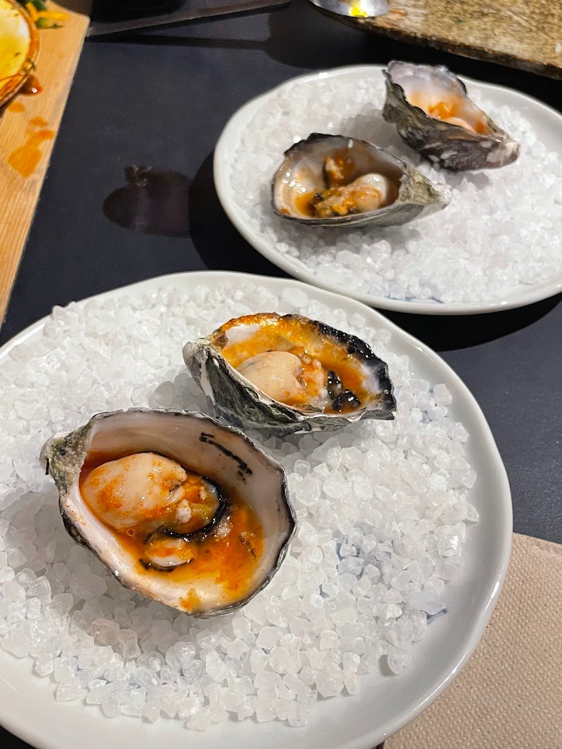 A birthday celebration brought us to Azuma Den. Rather than our usual set menu we tried our choice of dishes for a change. For starters we had the tacos, sashimi and oysters. The first two were delicious, fresh and a great example of fusion. The oysters were a slight let down, because of their very small size they just weren't very satisfying. For our main we had the pork-ginger and mushroom dumplings, the latter was a standout, I'm always surprised by how delicious vegetarian dishes can be. The accompanying cabbage slaw bathed in rich zesty dressing was a game changer for me in dumpling realm. We finished off with pork jowl skewers which were juicy, melty and umami-ful. Unable to settle on one, for dessert, we opted for all three- the brรนlee, meringue and matcha mochi wrap. I enjoyed the brรนlee which was decent sized, and I think could be shared between two as a sweet treat rather than a full dessert if you so wish. My cousin enjoyed the meringue which was chewy with coconut flakes offset by a savoury tasting custard. The matcha mochi was nice too, a quick morsel if you don't really have a sweet tooth but don't want to miss out. P.S. we found it very hard to find parking nearby on a rainy evening but the lovely waitress told us that there is underground parking available at the East Hotel and the ticket can be validated if you dine at the restaurant.