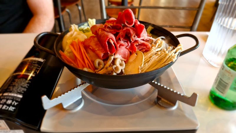 Small and long shop, perfect for dates and going in pairs. Can't fit a large group comfortably or you will be hitting ur back with the other person all night. Food in general was delicious. Good flavours for the Korean fried chicken, though not very crispy. Portion is very small for the price. Hot pot broth has good flavours as well. The mushroom pancake was crispy and interesting. Recommend that. Rice cracker ice cream was not my favourite, too little ice cream for too much rice cracker portion. Friendly service.
