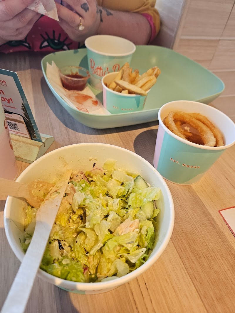 We were there around 5:15 pm Sunday evening, and the place was pretty busy already. Despite all that, the staff were wonderful, greeting everyone and making sure all tables were well looked after. Often, going above and beyond. We ordered the following items to treat ourselves. โจ๏ธBetty's Classic with Pineapple ๐ โจ๏ธ Kids Chicken Strip Burger โจ๏ธ Onion Rings โจ๏ธ Sweet Potato Fries with Sriracha Mayo Everything was done very well. I liked the option to use the Rustic White Bun over the Brioche Bun as I found a lot of brioche buns of recent a bit too sweet, and it takes away the flavours of everything else. The Burger was grilled to perfection, and that classic Betty's sauce was top notch. A perfect start for the Ballarat store, and everyone did very well considering they only opened for a few days. I got my eyes on the Chicken Burgers for my next visit ๐