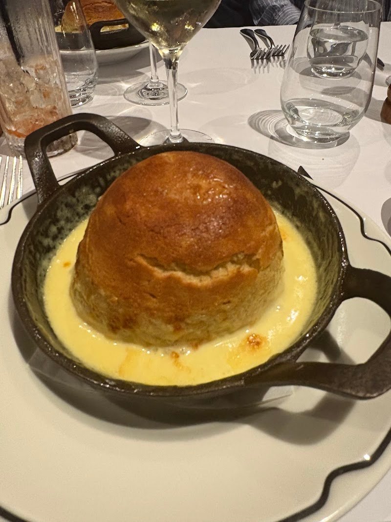 French cuisine at its best, without the 24 hour flight to France! Rich, large portions that will leave your belly full if you order an entree, mains and dessert. Every dish we choose was so different and delicious - full of creamy butter and French flair. Loved the French onion soufflé gratin - possibly the best onion dish I’ve ever had. The soufflé was a delight, light and fluffy, and a bit of entertainment as it wobbles on a sea of cheese sauce. Wow! We were so impressed by the chicken liver pate. A generous serving well paired with brioche toast and sweet quince jam. Our other friend had the beef tartare and loved every bite as well. Mains were well portioned. I had the barramundi and it was cooked perfectly. Extra crispy skin and soft fleshy fish. Would have loved a few more vongole. The best part was dessert - the waitress was so kind to ask the kitchen if they could serve the chocolate soufflé even though it has been off the menu for months. Thank you for the show and it was such a treat. Dark chocolate, rich and fluffy all at the same time. Us chocolate lovers were in heaven. I was pleasantly surprised by the Black Forest Bombe Alaska. I’ve had a few Bombe Alaskas in my life but this one had a well balanced taste in every bite - like a delicious Weiss bar but better. Would’ve loved it if it came out lit and on fire at the table - within fire, OH&S regulations of course. So glad to finally dine here and will be back. Thank you also for accommodating an unexpected guest last minute. Fantastic customer service (and beautiful ceiling).