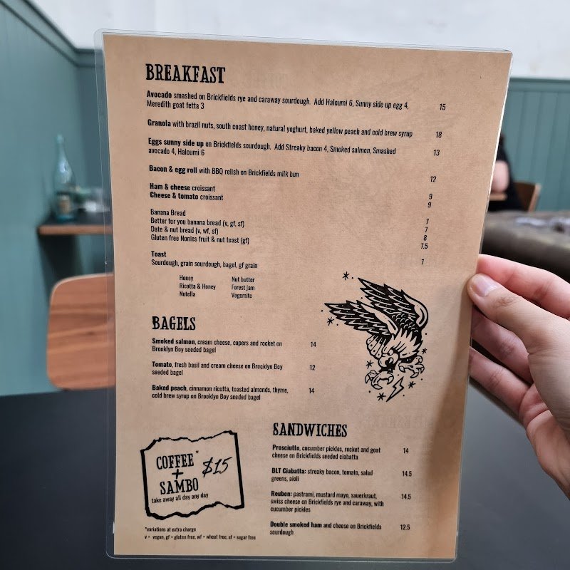 Great vibe, service and food. Love the coffee and food. Try the choc chip cookie, itโs soft, lightly chewy, and delicious. The prices are reasonable and portion size is good. The staff are friendly and food is made to order quickly. Itโs a nice atmosphere inside with good music. Most tables Will comfortably seat two or three. There arenโt many larger tables, only one four seater inside. Bigger groups may struggle to find a seat if the large computable at the front is full.
