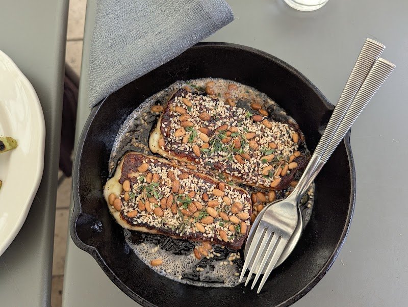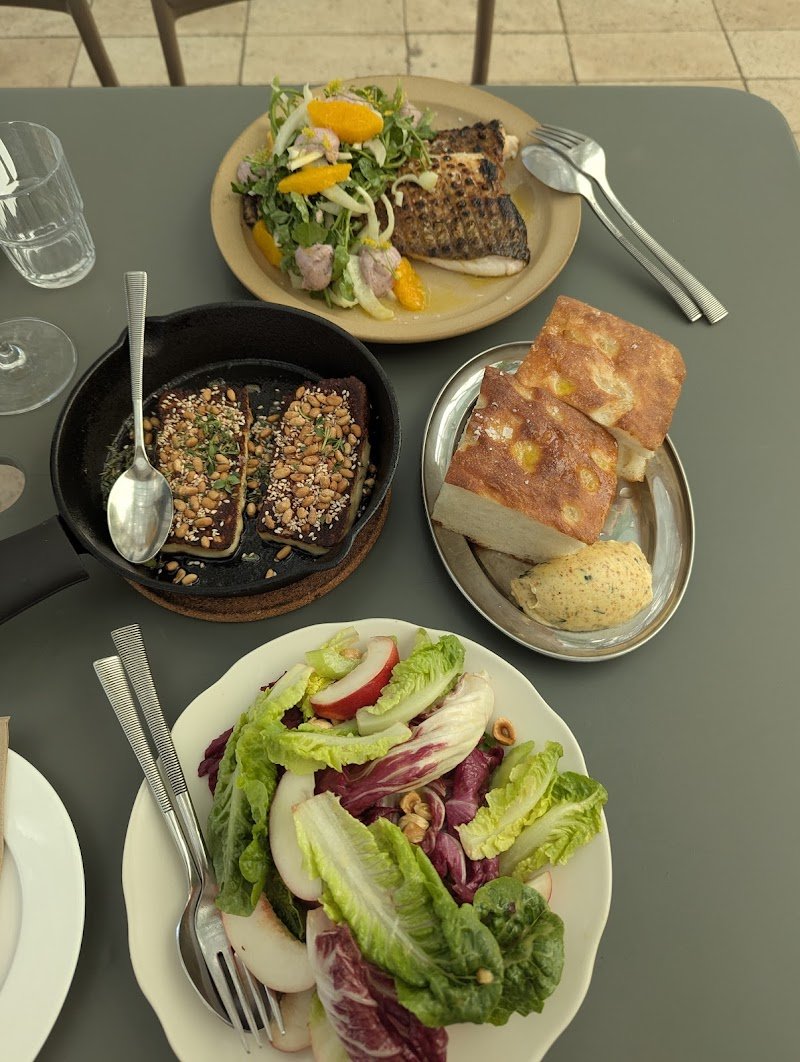 Blooming amazing eating option. The space itself is delightful, spacious and light filled and airy, quiet. Staff are friendly, pleasant, relaxing. Most importantly the food is excellent! The focaccia is amazing, the Halloumi is a sensation, the hummus is world changing. The bean dish was underwhelming. This is the sort of space I would bring friends in order to amaze them, and also the prices are reasonable for what is excellent food. UPDATE: I ate at bloom again. The halloumi was less great this time. Murray cod was very good. The summer leaves with nectarine I didn't think was that special. But overall the realisation was that this place is best with a larger group, at least 4+. The dishes are so great you want to try multiple different things, and the serves are generous so they can be shared between multiple people. With just two of us this time it ended up feeling more expensive, whereas a group of four could have ordered just a bit more, got to try more things, and ended up having just the right amount of food at a lower price.