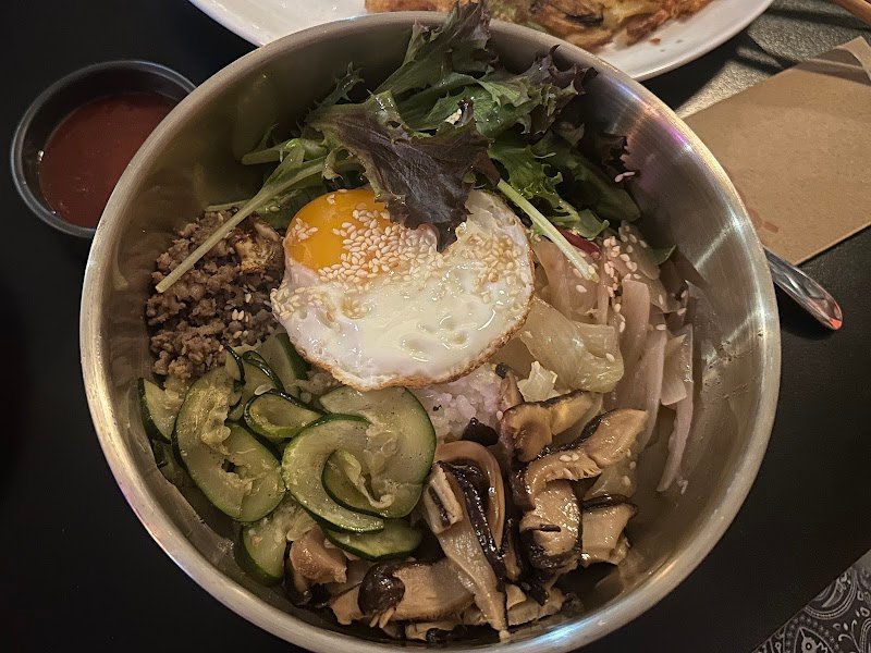 Excellent Korean food, Possibly one of the best weโve ever had in Oz. Fried chicken and chips were awesome although the sauces were unique/unusual IMO, but then again that seems to be a trend with other korean fried chicken dishes Ive had previously. Eating it plain was fine Seafood pancake was a meal in itself with lots of large pieces of seafood BimBimBap was also one of the tastiest