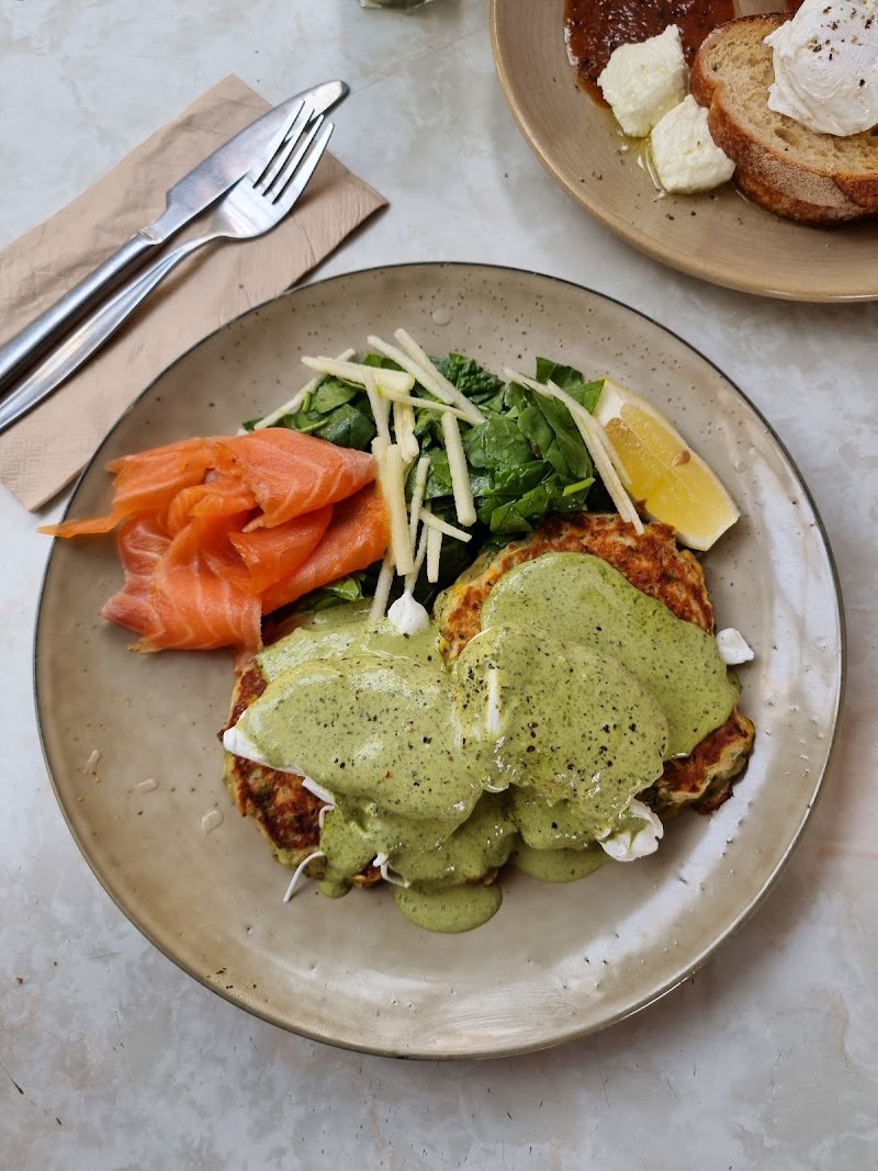 Hobestly the best breackfast I have had in a long time. The Zucchini and corn fritters with smoked salmon was amazing! Alao loved the artwork around the room.