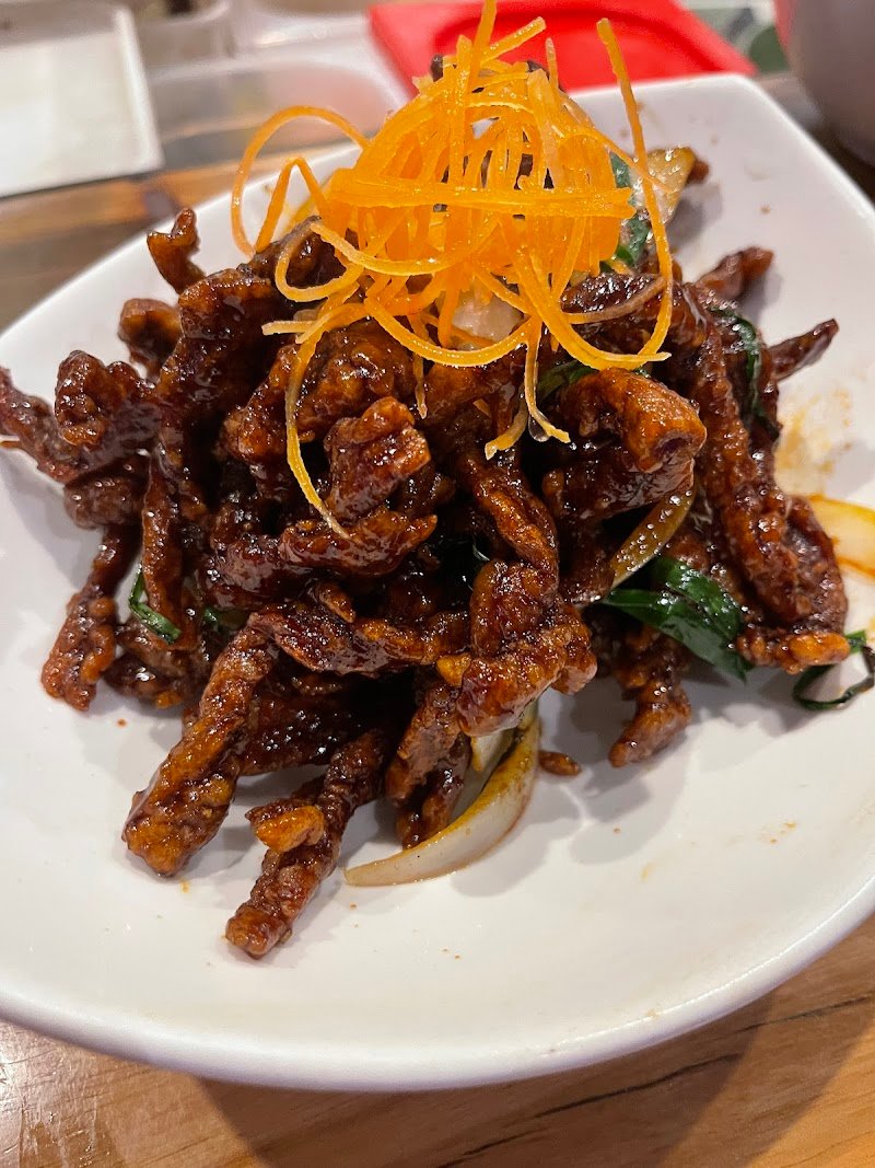This place is a quiet gem!! Beautiful view of the fairy lights and courtyard, with moody lighting to match. We came hangry and they fed us the most delicious food 🤤 the fried wontons were a fantastic crunchy starter, and I also ordered the Mongolian beef by the waiters recommendation (I'm so glad I listened to him!!). My dining partner had some juicy fresh san choy bou and roti + curry that had passerbys asking us what it was. We are so glad we found a place open late enough, the staff were fabulous and passionate.