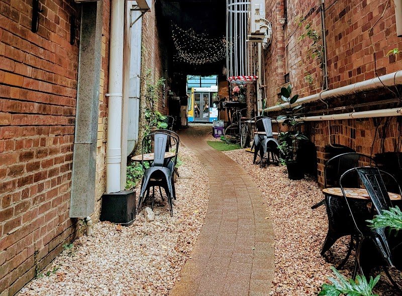 Super cool hippie cafe in the heart of the cbd. Very close about 10 minute walk from Roma street station. Surrounded by towering buildings but has a nice bit of nature tucked away. Coffee is very delicious, same with the matcha. The prices are average for the location with entrees around 20-24$ and coffees around 7-8$. Lots of very cool food options like okonomiyaki, udon, and several different Asian fusion dishes. I have been having a really hard time lately and wanted to explore and find a ni