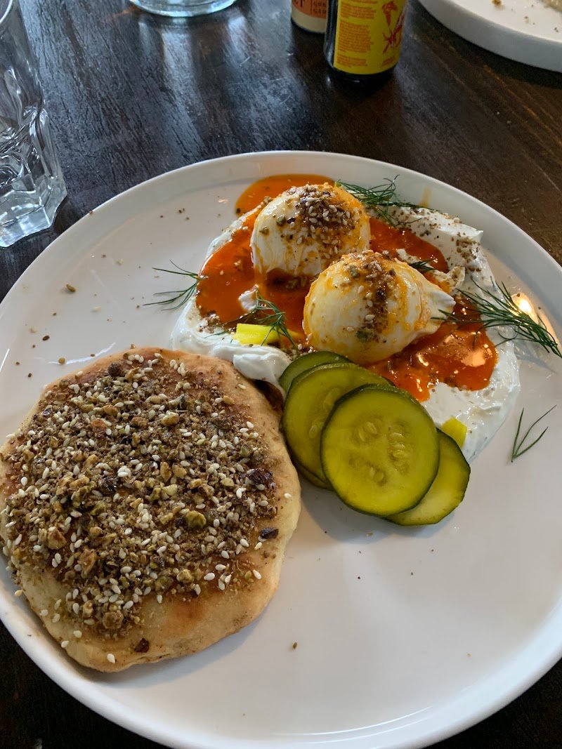 This little cafe was nearly full by the time we got our food, and we arrived at 12:30pm on a Friday. The one maitreโd (assisted by a barista) was fully stretched. The atmosphere was eat-quickly-and-leave. My friend joined me and looked doubtful โwhat made you choose this place?โ. I was starting to doubt myself, having been brought here by a BEAUTIFUL instagram account and a story of all-house-made dishes - down to the flat bread. They had me at house-made flat bread (I must write a review of Our Lady of St Kilda sometime, where i first encountered house-made pita bread - a life changing experience). This version was not pita, it was almost a squat, pan-fried leavened bread, but it was marvellous, and was paired so beautifully with the accompaniments. I tried a bite of my friendโs lamb on a bed of hummus and topped with pomegranate and oven roasted chickpeas - and I knew Iโd been right to come here. The Turkish eggs were superb. If the vibe lacks tranquility, the hidden magician producing the food more than makes up for it. We also tried a pistachio cookie (complete with viral kataifi) and a slice of carrot cake - all made by the same magician and both MAGIC. (Skip the hot chocolate, as it clearly lacked heart - and, tellingly, is omitted from their beautiful instagram feed). HIGHLY RECOMMEND!