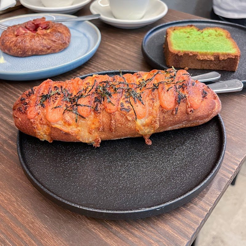 We really enjoyed the four cheese croissant. The strawberry matcha in a can is a fun and convenient takeaway option. The miso pork belly danish had great flavor, but the meat was a bit too fatty for our taste.
