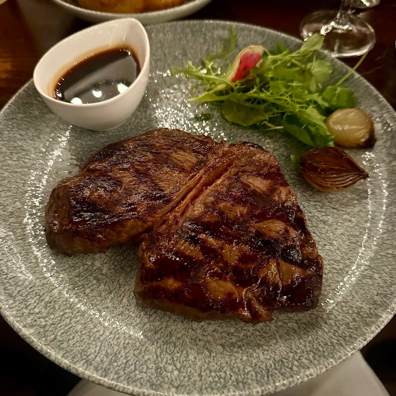 Service fantastic. Steak cooked to perfection, truffle butter complimented the dish perfectly. A must is the potato gratin. Finished with the best crumble Ive had in a long time.
