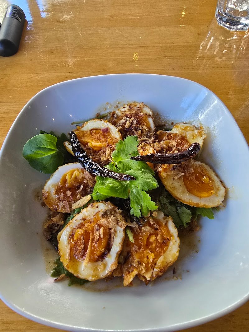 Beautiful food, lovely service. One of the waitresses said sheโd just come from Thailand and that the Pad Thai was just like home. And it was delicious. The chicken wings and son-in-law eggs were also amazingly tasty. Just a shame it was so hot inside! Iโm glad they decided to open the cafe doors