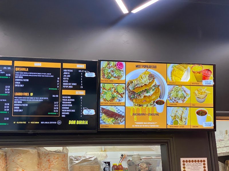 Don Birria was amazing! I literally inhaled my food thatโs how quick it went. I went with my brother and we got the โMost Popular Duo โ Quesabirria + Consommรฉโ and a large mango drink with (what I believe was) a tajin and lime rim I canโt remember the exact name, but it was bussing! The food was unlike anything Iโve had before , absolutely spectacular. The lady who served us was lovely and super patient, even when I kept changing my order sizes. Our food came out quickly despite the place being packed, and itโs easy to see why itโs so popular. Only downside was the slightly wonky table we sat at, but honestly, thatโs such a tiny thing compared to how good everything else was. 10/10, would recommend without hesitation.