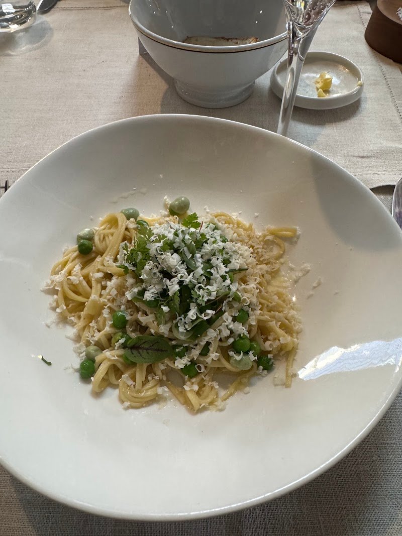Annieโs restaurant offers a delightful home dining experience. First served with her freshly baked sourdough bread and butter, setting the perfect tone for the 4-course meal (btw, the bread is constantly topped up when emptied). The first course entrรฉe was pork terrine. The second course was spaghetti pasta made from duck eggs and a simple sauce with fresh peas and broad beans and olive oil. For the main course, braised and roasted beef was accompanied perfectly with roasted potatoes, steamed cauliflower, and a creamy parsnip purรฉe that complements the dish beautifully. The dessert was a masterpiece, featuring meringue, lemon curd, and strawberries poached in blood orange, topped with a refreshing crรจme fraรฎche ice cream. Overall, Annieโs provides a memorable culinary journey with each dish thoughtfully crafted and beautifully presented.