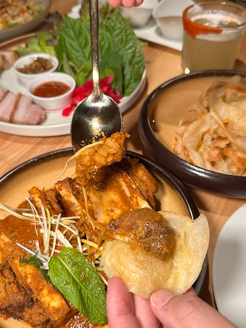 Love the setup from the entrance and You know the food will not disappoint. Interesting take on bespoke familiar Malaysian/Singapore food. The popular Laksa Bomb lived up to its name. We had crab meat Caesar salad , prawn toast , clay pot rice, raw kingfish , eggplant. Dessert was the ooh lala Pandan Lava cake. The service was impeccable. Special mention to chirpy Laurel with her positive energy.
