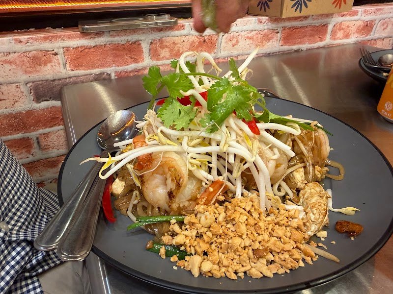 HUAMOOM Thai Town Restaurant is a nice place to try delicious Thai food. The seafood fried rice I had was loaded with large shrimp, mussels, squid rings, and fish, making it generous in portion and rich in flavor. The Beef Pad Thai featured tender, flavorful beef, and the translucent noodles are springy and naturally sweet, with dried shrimp adding an extra layer of umami. The avocado smoothie is refreshing and silky, with an excellent taste. I highly recommend the strawberry yogurt smoothie as it perfectly balanced between sweet and tart, richly creamy, and absolutely delicious.