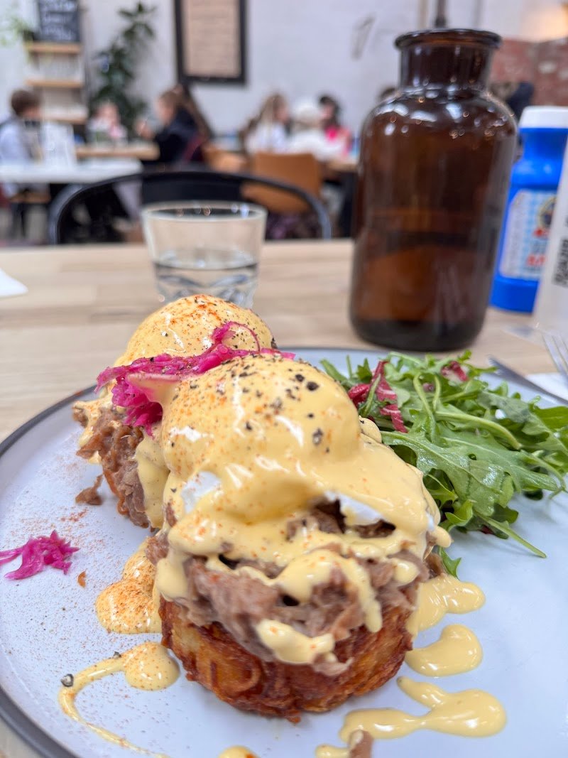 My wife and I came here for a quick lunch today and were pleasantly surprised with the whole experience. My wife had the Eggs Benedict with prawns and I had the smoked pork Adobo burger, both dishes were delectable. Then on the personal recommendation of our friendly waitress we shared a slice of Banoffee pie (went down a treat!). Definitely worth a visit! We will be sure to visit again soon.