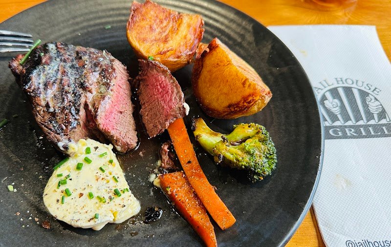 I arrived at Jailhouse Grill with an expectation of a dark, bougie steak house like I might find in Sydney. It was such a pleasant surprise to find something that actually reminded me more of the family steakhouses of the southern US. I really enjoyed the salad bar as I was waiting for my steak to be prepared - it had a nice assortment of salads with greens, fruit, and pasta. My steak, however, was the absolute highlight of the evening. I ordered the 650g Rump Steak rare and it was absolutely delicious. I let the slabs of herb butter soak in and I added a bit of cracked pepper and salt to taste. The staff were incredibly friendly and we always actively keeping up with the salad bar and making sure no food sat long in the window. A+ experience, best of Lonnie for sure!
