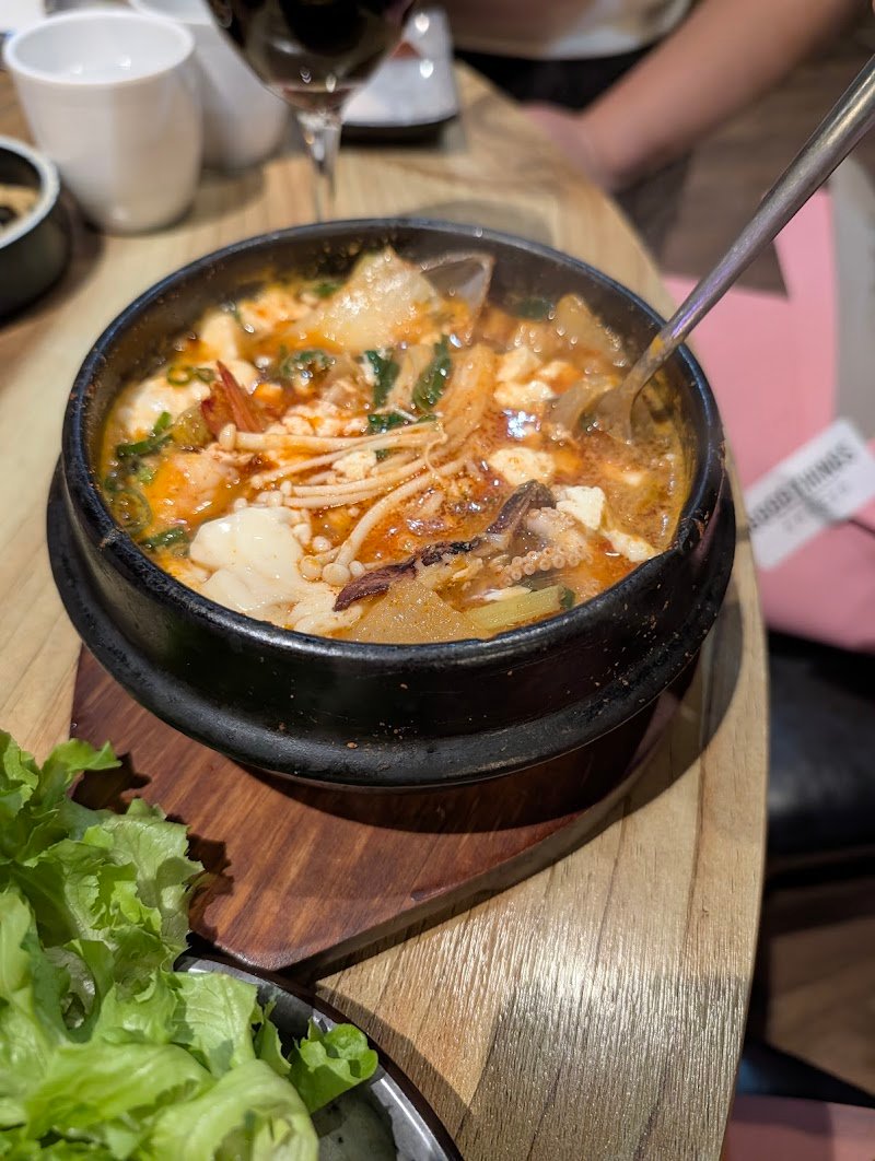 Fast n friendly service. Plenty of tables. Kimchi pancake was average. Seafood tofu soup was good.