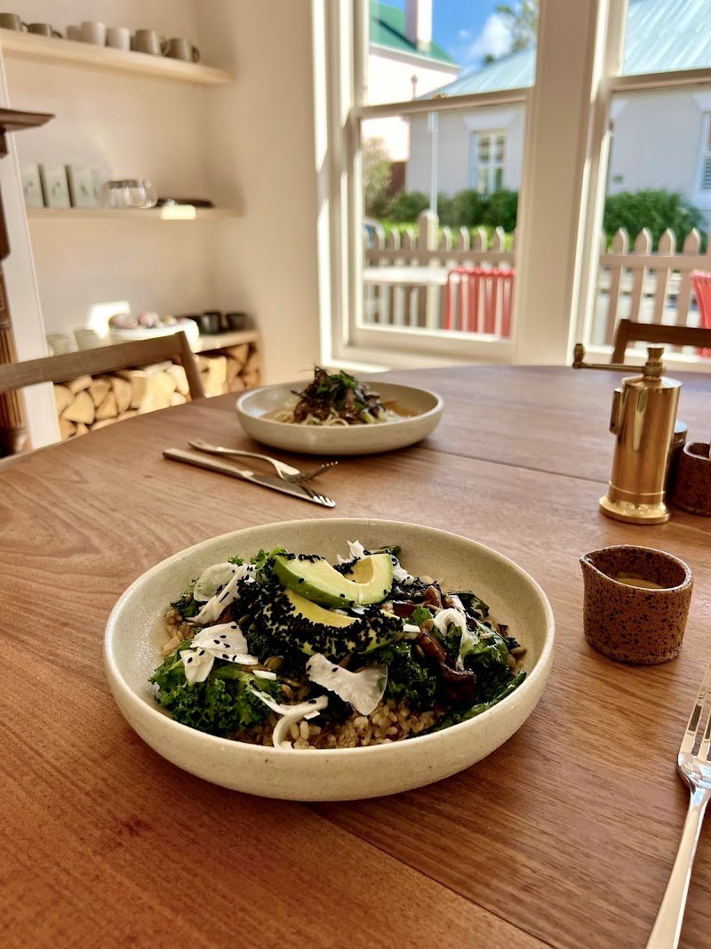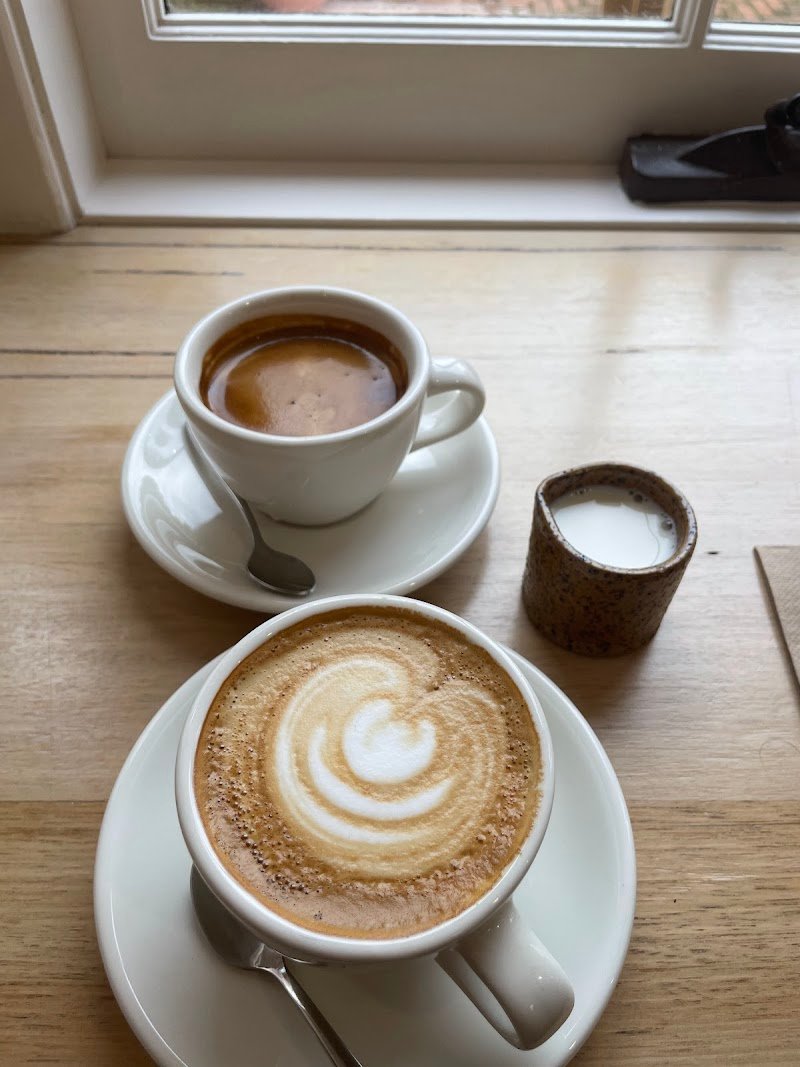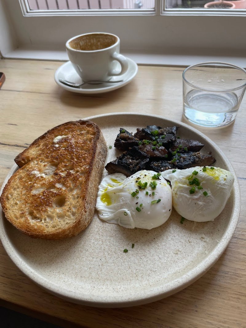 Came for breakfast for 2. Environment 1. Nice hole in the wall in a vintage building in Battery Point. 2. Pleasing decor with internal and external seating. 3. Can get busy so plan ahead. Not sure if they do reservations. Food and drink 1. Good food presentation. 2. Got the cornbread and the olive bread. Cornbread can be spicy, so beware. Otherwise was good Olive bread was so so. The herb salad that came with it was a sprinkle of mint, parsley and fennel leaves. The dish came with eggs that looked like they were meant to be poached but appeared mixed (poached, uncooked, semi-hard) in their degree of done-ness when consumed. Eggs still had cooking water which was disappointing. 3. Had the "coffee with cream". The price to volume ratio was very disappointing. TLDR: It was good but some things pulled the experience down.