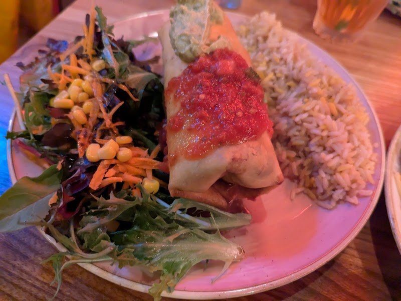 Wow, amazing vegan nachos.. Such a lovely atmosphere too. Staff were friendly. Food was amazing. I had the vegan chimichuri and nachos. So goood... My friends had a burrito, also very happy.