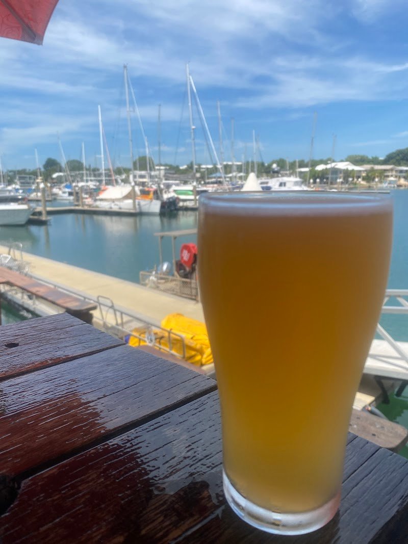Lovely open bar on the water at Cullen Bay. Had the fish and chips. Lots of comfy lounge seating plus high tables with stools. Lovely staff and good food.