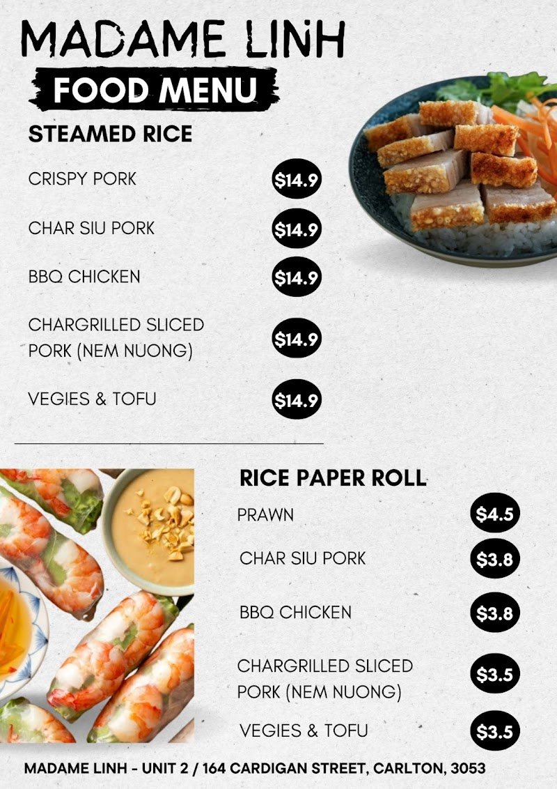 Madame Linh is a lovely Vietnamese restaurant that truly delivers on flavour, quality, and experience. From the moment we arrived, the owner and staff were incredibly friendly and welcoming, making us feel comfortable right away. The food was excellent across the board: • Crispy pork bánh mì – the pork skin was exceptionally crispy, perfectly balanced with soft bread and fresh fillings. • Dry char siu noodles – the sauce was rich and flavourful, coating the noodles beautifully and soaking in well. • Grilled pork spring rolls (gỏi cuốn nem nướng) – the nem nướng here is noticeably different from what you usually find in Australia, with a unique and memorable taste. • Betel leaf beef (bò lá lốt) – tender, juicy, and not dry at all, served with a deliciously seasoned sauce. • Fried spring rolls (chả giò) – fragrant, slightly rich, and very satisfying. • Char siu bao – soft, fluffy buns with a generous and tasty filling. The drinks were just as enjoyable. Both the matcha latte and coffee were smooth and not overly sweet, which we really appreciated. The restaurant itself is very convenient with plenty of parking available, the space is open, airy, and beautifully designed, and the dishes are presented beautifully. Ordering is simple and easy, making the whole dining experience relaxed and enjoyable from start to finish. Overall, Madame Linh offers comforting Vietnamese flavours with excellent execution, warm service, and a well-thought-out space. Highly recommended if you’re looking for authentic Vietnamese food done right in Melbourne. 🌿🍜🥖