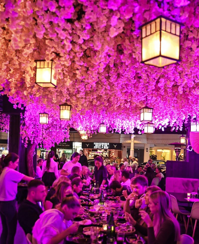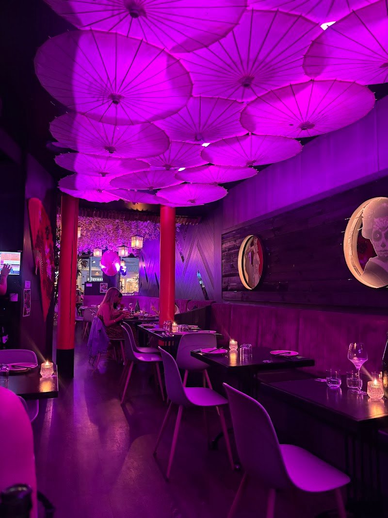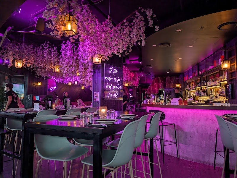 Modern haunt awash in pink neon lights, supplying Asian fusion dishes, drinks & weekly live music.