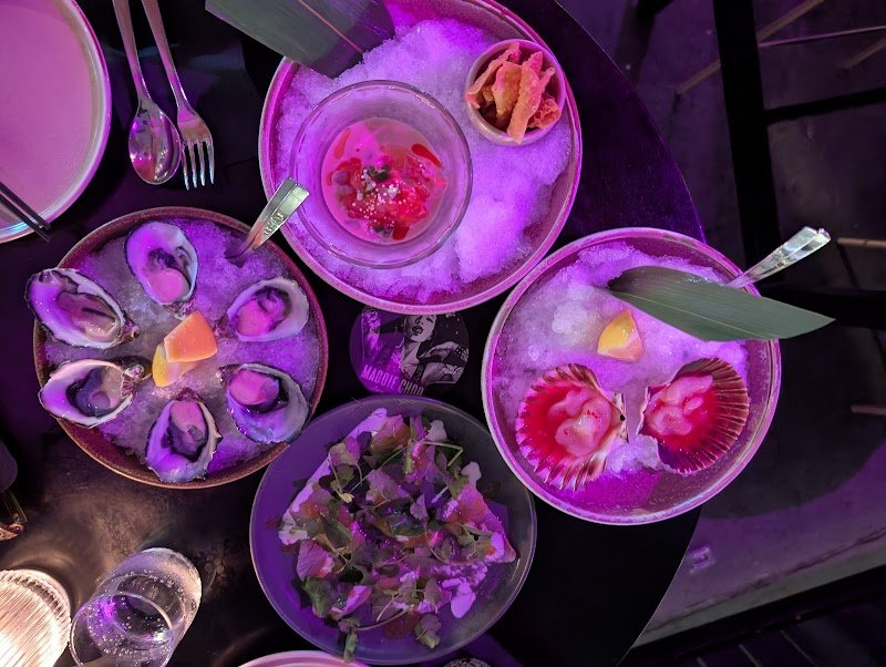 Walked in on a Saturday night with no booking and thought itโd be a long shot but the hostessโ were somehow able to squeeze us in at a beautiful table out front - very lovely girls. Our waitress was attentive but didnโt make much effort to interact with the table outside of the normal ordering process. Ordered the oysters with Thai vinaigrette, king fish sashimi, wagyu tataki & chicken Penang curry (not pictured). Everything was phenomenal, couldnโt pick a favourite!! Will be coming back soon :)