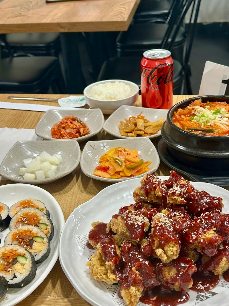 Had a full lunch here with a snowy cheese fried chicken, spicy pork kimbap, kimchi fried rice, beef bulgogi, and bento box. Food and ambience were average, but services and the owner was friendly. Good experience and reasonable price.