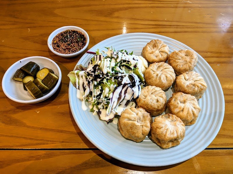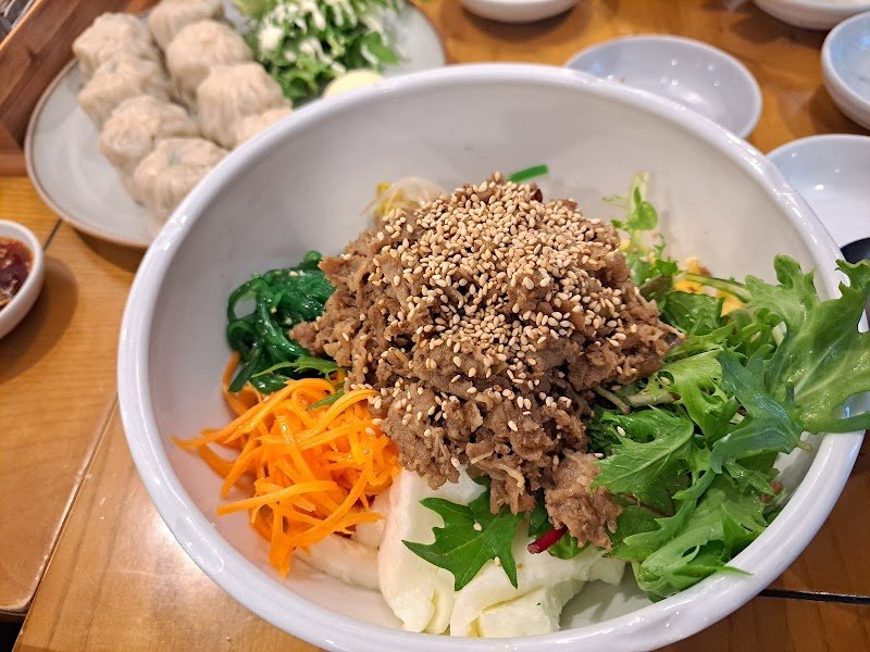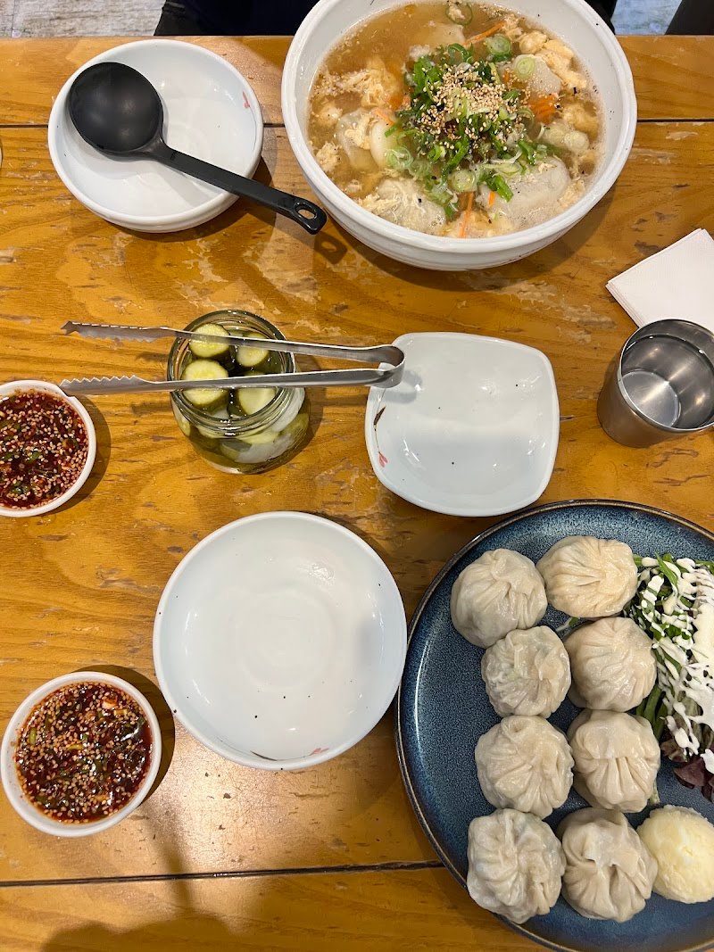 We had an awesome meal We had half/half pork/kimchi dumplings. We preferred the fried ones. We also had bi-bim mandoo. The owner was saying that we were getting into the chili dipping sauce with the the dumplings and so offered us his favourite sauce for the bi bin mandoo. It was excellent. We were full. It was a busy place at people ate and left and even a bit of a line out the door. Definitely not YouTube or dumplings. worth a try.