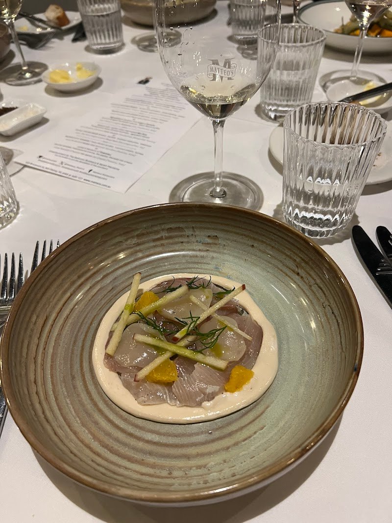 Had the 5 course tasting menu for $160 and enjoyed a good range of foods. I usually have to eat more after having a tasting menu because the meals aren't overly large but this was a good amount of very nice food. Everyone in Melbourne seems to know Matteo's as its been around for a long time and it's for good reason because we had a fantastic night. The service was fantastic, wait staff that had a chat and were just friendly and welcoming. I do recommend