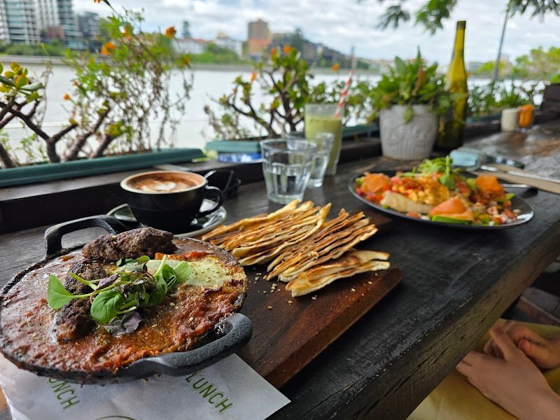 We first visited this place about 3 years ago when we unexpectedly got caught in a torrential storm. My husband and I dived in and asked a guy [who seemed like the owner] could we shelter there. He aฤบlowed us to even though we didn't buy a thing. The place was empty and quiet at the time. We were there for probably an hour, watching the wind and rain hammer down on the Brisbane River Fast forward 3 years .... We always said we'd go back and have lunch there and today was the day! Sadly, that guy was not there today but we were greeted by a team of warm, welcoming female servers. We sat at the exact same spot as earlier! This time, the place was buzzy and vibrant with every table on the outside patio filled with friends, enjoying each other's company or couples having a bite of lunch and a drink together at this stunning Kangaroo Point location. The menu was inspiring and I liked the look of everything on it but in the end settled on the Spicy Prawn Tacos. Super yummy! My husband had the Chicken Yiros and I helped him with the fresh, delicious Greek Salad and Tzatziki! Lovely presentation of the food too. I also had Sylviaโs Basil Pop which was lovely and refreshing. Hard to beat this level of hospitality, food, location and service. Highly recommended!