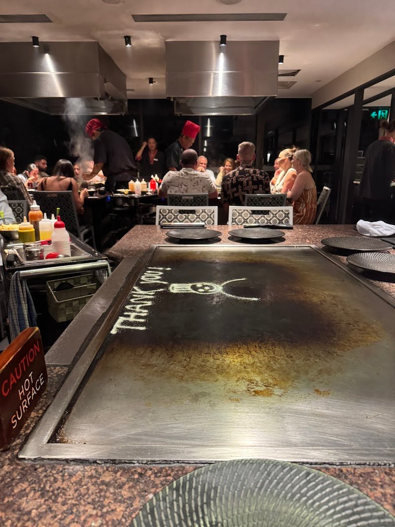 Great vibe and atmosphere only if you have good company or table full of people you know. Take your friends, family or work colleagues otherwise youโll be seated with random people and it can be a hit and miss. We waited for almost 50 mins until the chef came out. Booking was for 8pm. My partner and I arrived at 8:03pm. We shared a table with a family of 4 who arrived about 15mins late. Our drink order was taken immediately however they didnโt arrive until 30 mins later. No water was offered in the meantime. Other tables that came in well after us had chefs cooking immediately. We almost walked out but stayed because my partner raved about this place (last went 2018) and when our chef did finally come out he was lovely. But even then the experience was turned sour as we noticed he didnโt stay long compared to the chefs on other tables. I guess the โvibeโ wasnโt there. Food was average. You definitely pay for the experienceโฆwell in my case, lack of.