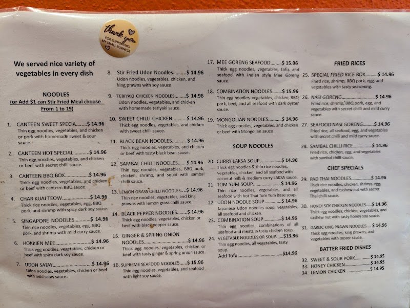Not impressed in the slightest. Saw that this place had great reviews for Laksa in Ballarat and ordered a seafood laksa. While eating it, I nearly choked on a piece of wire that was in my soup! Clearly not great food handling practices, it looks like a piece of wire from a cleaning scourer. I wonโt be ordering from here again- not with foreign objects in my food.