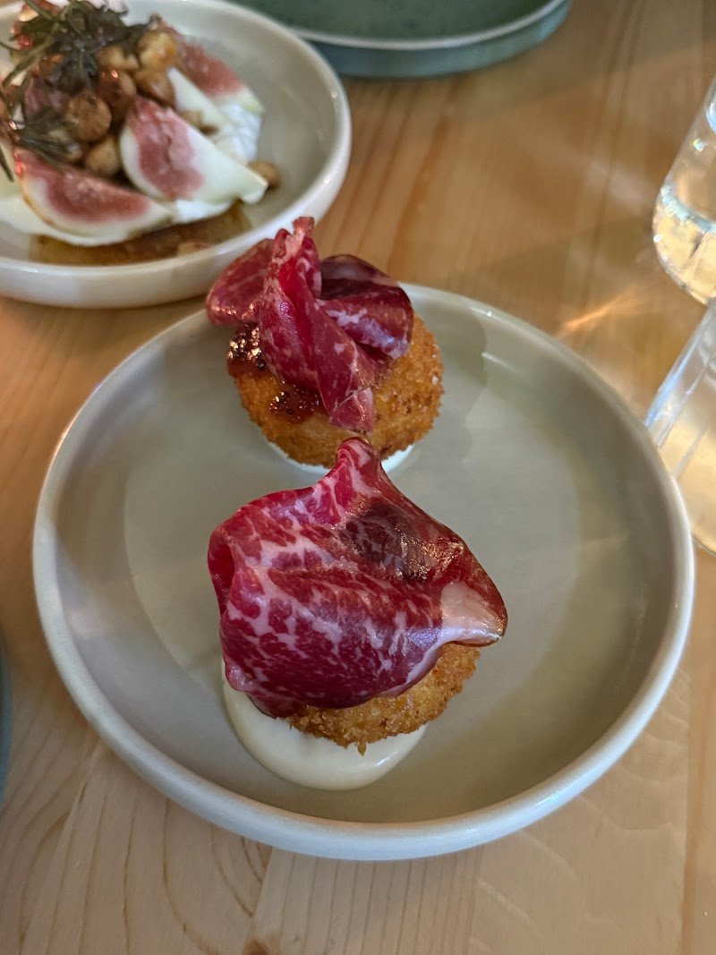 I couldn’t fault the food and the service was very friendly and attentive. Would recommend the croquette and arancini ball for the entree. Loved the Italian sausage and beef cheeks. Also loved their philosophy of buying locally sourced and seasonal produce. Would recommend sitting outside if possible as sitting inside near the kitchen did make our eyes water a little with the chilli being cooked.
