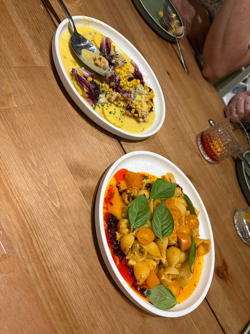 Great service, super friendly staff, delicious food and nice wine list. The menu isn't overwhelmingly long and busy, which is great. (Under promise / over deliver) The food was great, however, I have only one suggestion to make it even better... When your pasta sauce is so incredible (that chilli shellfish bisque is to die for) to not give a tiny bit of focaccia in the end to clean the plate is criminal. I didn't lick my plate because my wife was there and I didn't want to embarrass myself, but I was dying for a small piece of focaccia.