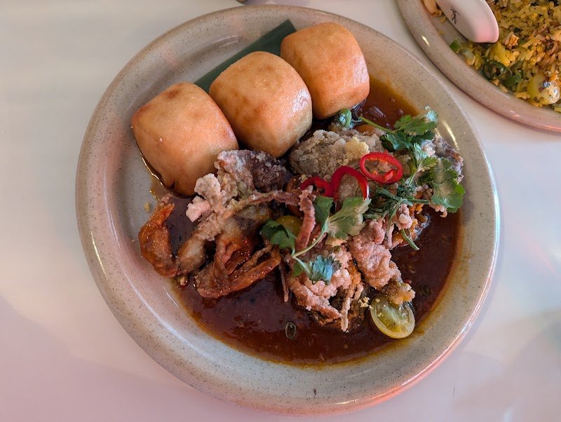 Great decor and service. The nyonya chicken curry and the lemongrass fish were standouts - delicious! Laksa Dumplings and deconstructed pork belly baos were okay (the bao bun wasnโt the best). Nice ice cream sandwich dessert.