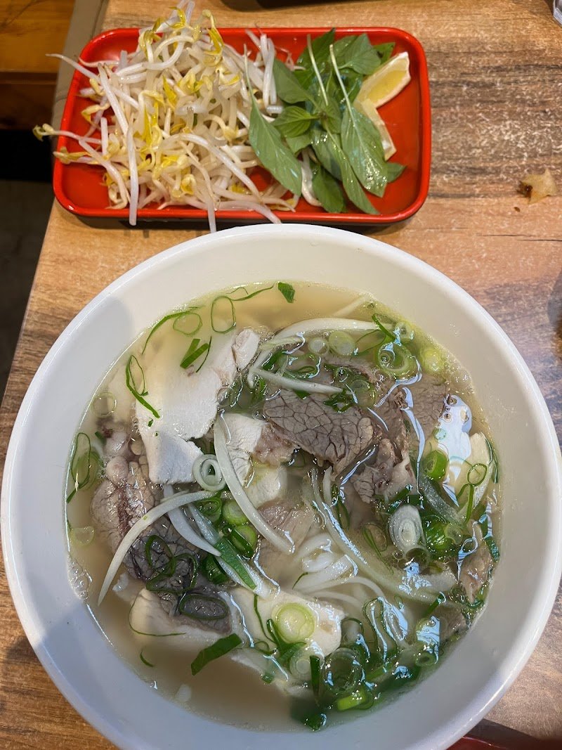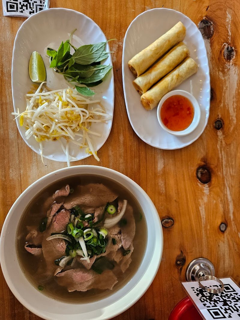 A great pho spot hidden in the corner of a parking lot. The industrial modern decor is super cool, and the ceiling covered in doodles and funny quotes adds so much charm! The pho is delicious, the banh mi is wonderfully crunchy, and the vermicelli noodle salad is fresh and full of flavor.