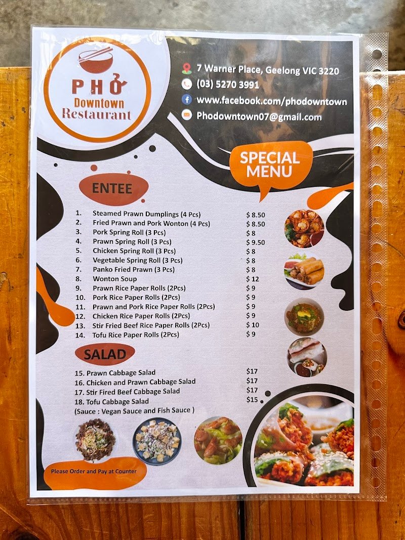 Pho Downtown in Geelong serves authentic Vietnamese cuisine, specializing in flavorful pho noodle soups and a diverse menu of traditional dishes. Experience the vibrant tastes of Vietnam in a modern and inviting atmosphere.