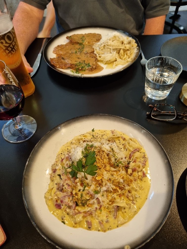 Had the pizza and pasta here the pizza is really nice and would recommend to anyone but the carbonara pasta felt bit flavourless pepper was so strong I feel like it killed the dish i personally wouldnโt pay $36 for it again seems bit over priced for pasta but other then that staff are lovely