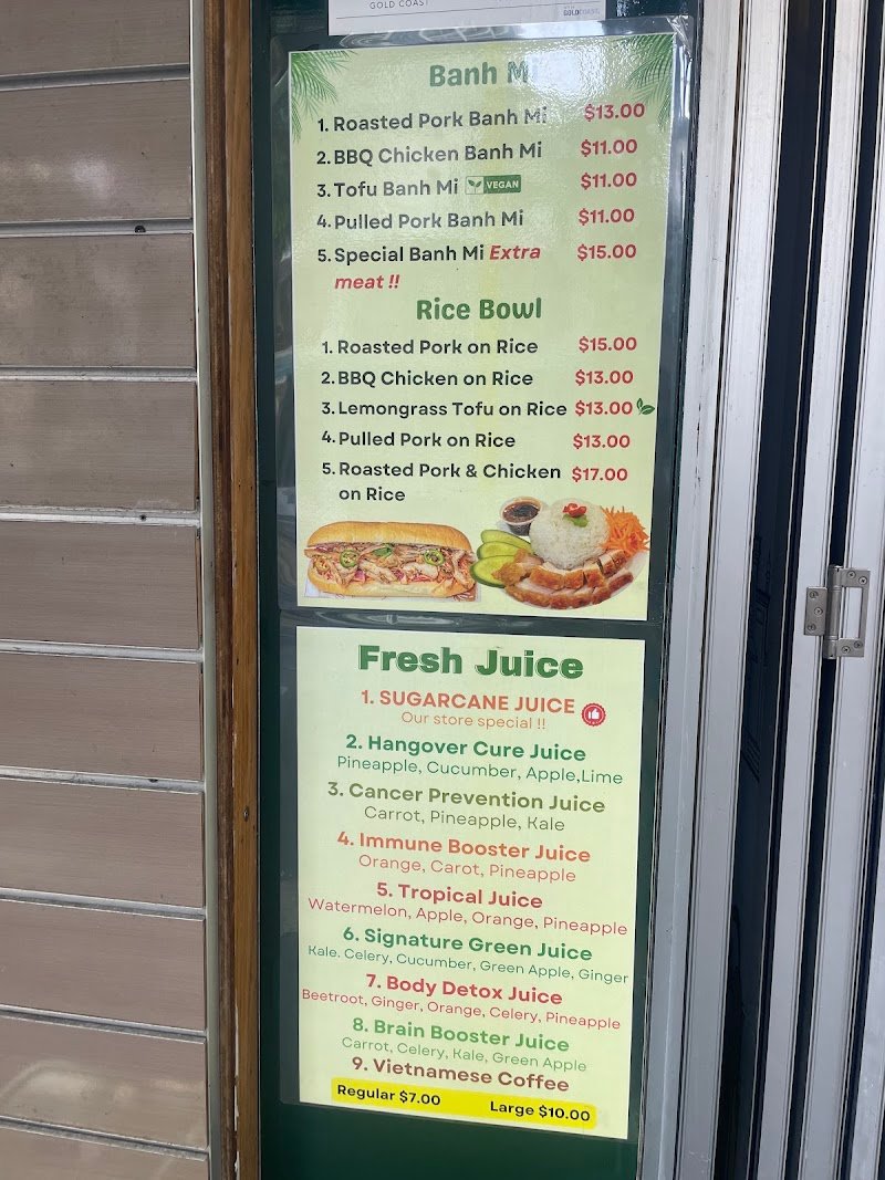 Saigon Baguette & Sugarcane Juice in SurfersParadise, serves authentic Vietnamese street food, including crispy baguettes and refreshing sugarcane juice. Cozy spot with takeaway options, popular for locals and foodies seeking a quick, delicious bite.