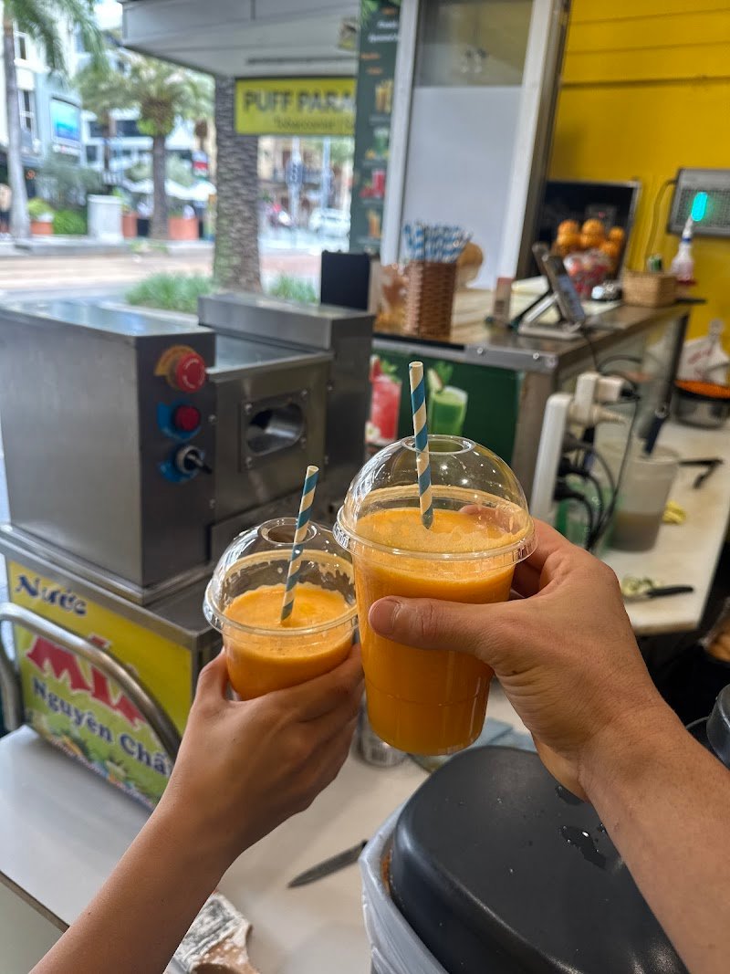 The banh mi offers a variety of meats, but it was a bit dry. With better seasoning and slightly lighter cooking, it would taste much better. The sugarcane juice and other drinks are made from fresh fruits.
