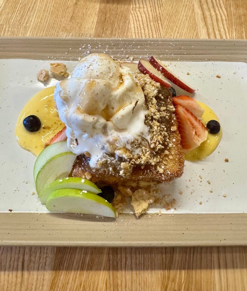 The apple crumble french toast is nice and tasty, if you are after something sweet. The corn and leek croquette was delicious, the seeded mustard cream was so tasty and flavourful, it really tied everything together. The potato rosti was also nice, the mustard dressing was a nice touch and added more flavour. Service is friendly and reasonably quick. We had ordered two dishes and one came out first and then maybe 5 or so minutes later the other one came out, would rather them both come out at the same time. Overall a really nice cafe to visit thats not in a busy spot.