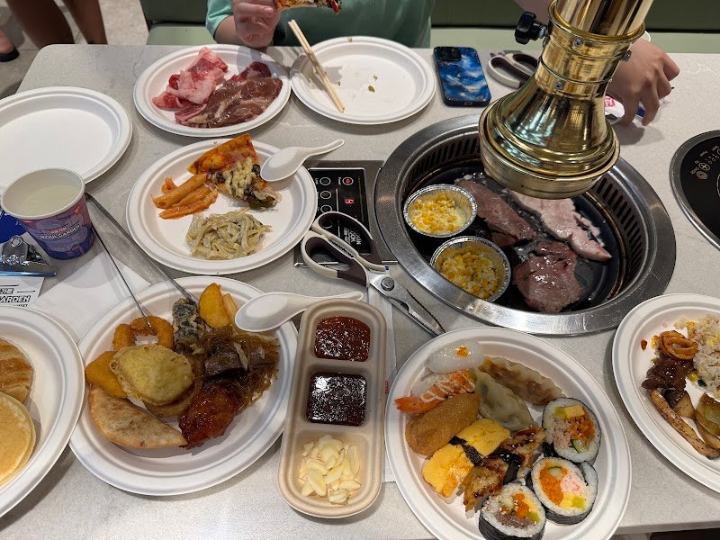 The food here is amazing — you can try many famous Korean dishes for $42–$49. I wish I could eat more. There is a wide variety of meat (beef, pork, chicken), seafood, and dishes such as tteokbokki, sushi, mandu, kimbap, galbijjim, and more. They also have desserts. I can understand why some people give this place a low rating. The service isn’t great, but considering the restaurant has just opened and most of the staff are new, it’s not bad. The waiting time was about 40 minutes on a Saturday lunchtime, and once seated, you’re given 1.5 hours to eat. If you can go with a Korean friend, you’ll probably enjoy the food more — they know the best combinations and how to eat it properly.