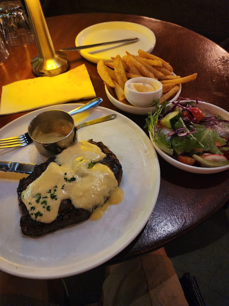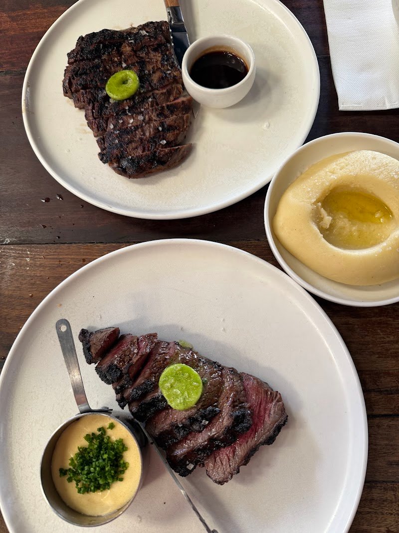 Steak was great, really tender and perfectly cooked. The condiments let down the overall meal. The bernaise was split, the peppercorn sauce tasted like bbq sauce and the chimmichurri was blended which I thought was an interesting choice. I would come back and order the steak again but make some other choices.