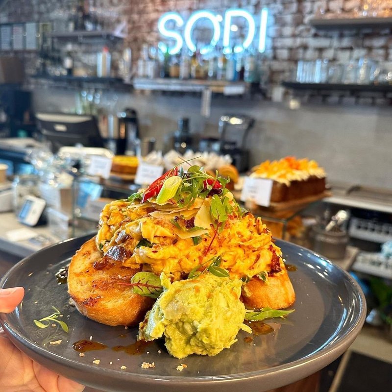 Had a fantastic breakfast at Sodi! The chilli scrambled eggs were moist, had just the right level of spice, and paired beautifully with the shallots and smashed avocado on soft fluffy sourdough bread. The iced latte was strong and well-balanced. The Eggs Benedict with bacon was perfectly cooked - juicy and flavorful- while the mint pea added a unique twist to the tangy sauce. The staff were friendly and attentive, and the seating options were great, with both front and back areas plus a spacious outdoor section. Looking forward to trying the pastries next time!