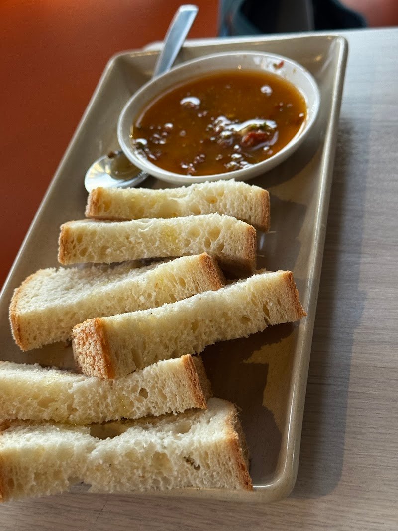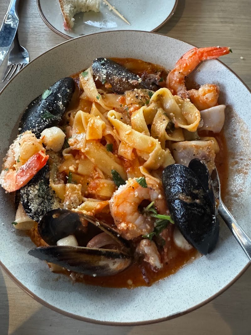 Canโt fault this place my first visit ! Last time couldnโt get in ! We had a pasta a pizza house wine and a spritz it was all delicious ! Loved the little touch of the complimentary breads and cheese - service was swift and smart - do yourself a favour and book a table today !
