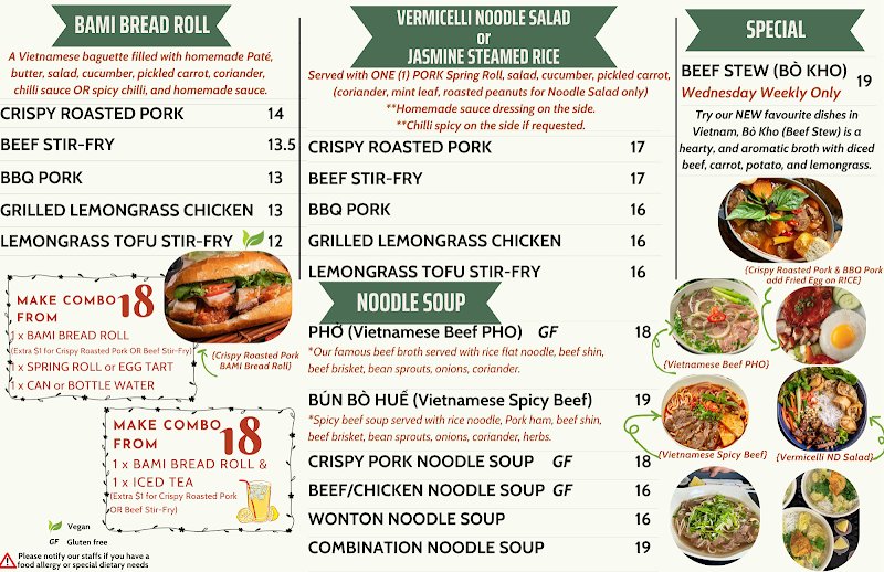 I love this place! I went on several occasions and it's always great! Lovely and chatty staff and the food is delicious. The crispy roasted pork belly bami is to die for!! Taste fresh and has a beautiful combination of flavours. Affordable too, it's 13$! Highly recommend!